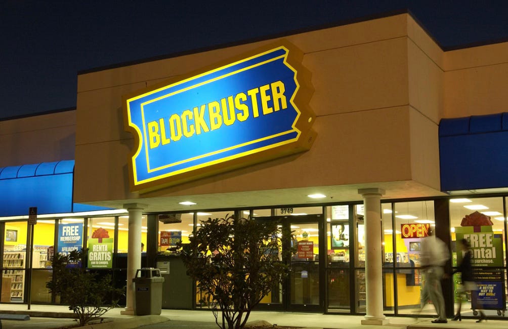 Blockbuster was the local dealer. Our Mister Feel Good, everything’s gonna be all right. Tapping into our veins two to three times a week. Our lives went from VHS to DVD in a flash. The future is now. Then it all fell apart before our very eyes, vaporizing as streaming became all the rage.